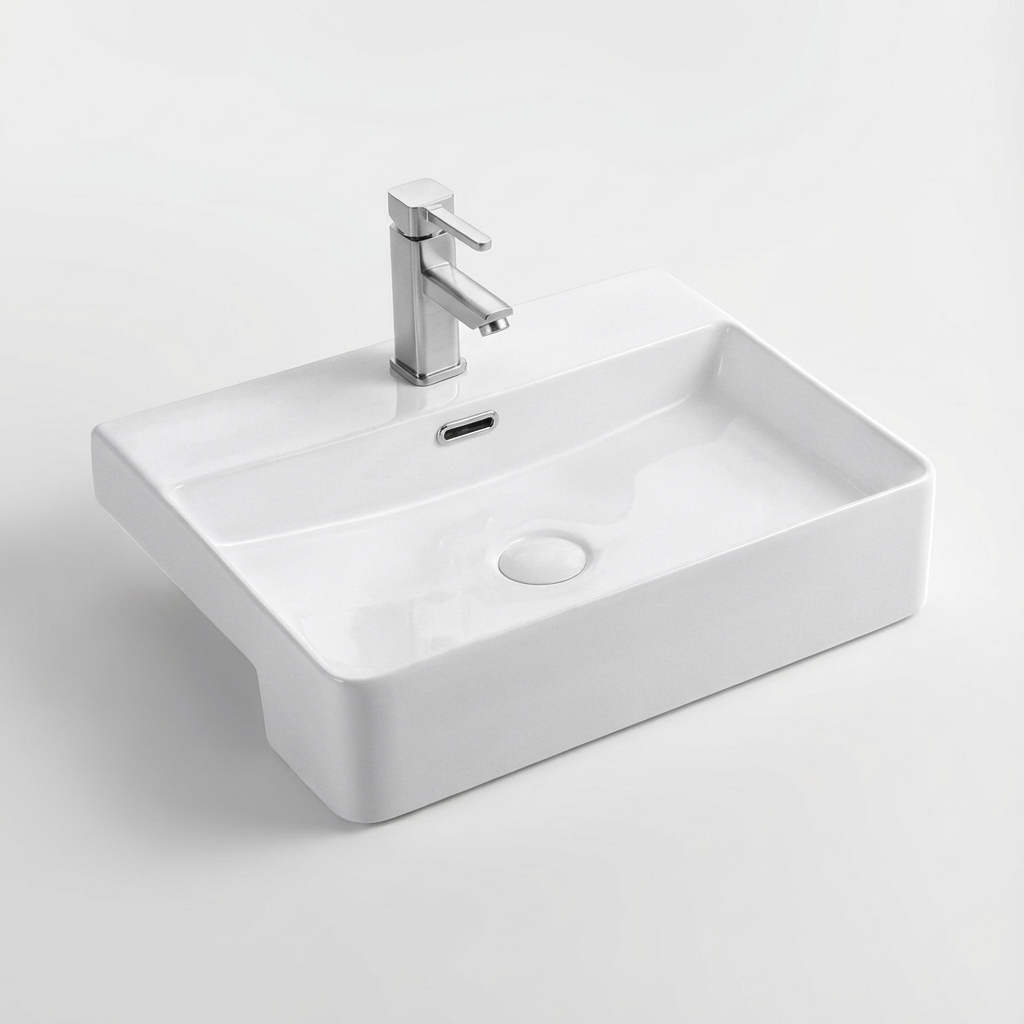 Upgrade your bathroom into a modern sanctuary with the Aquant – Semi Recessed Wash Basin – 1607. Seamlessly combining innovation and elegance, this Rectangle Shape Wash Basin brings a touch of class to any bathroom decor.