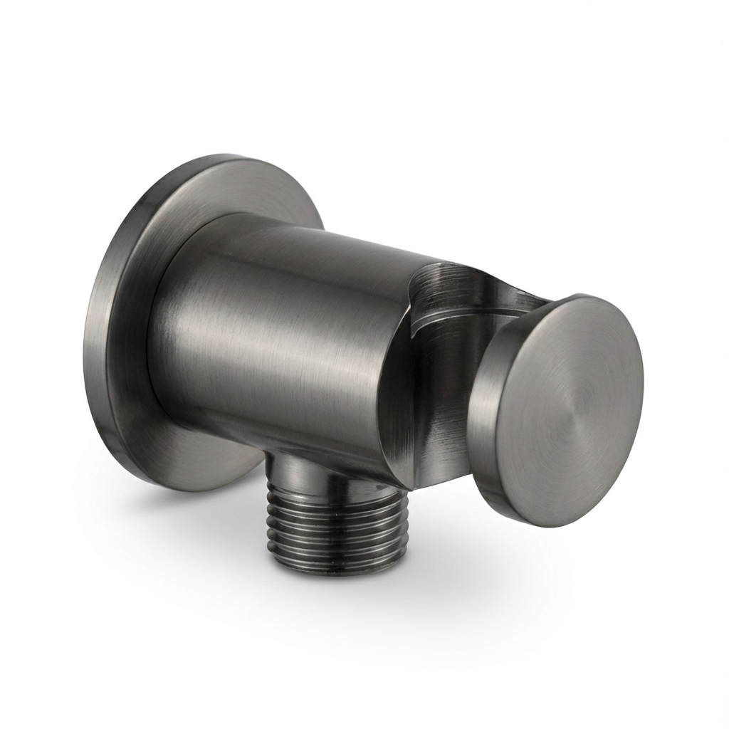Aquant – Wall Outlet With In-built Hook (Brass Round Body) – Graphite Grey – GG 1442
