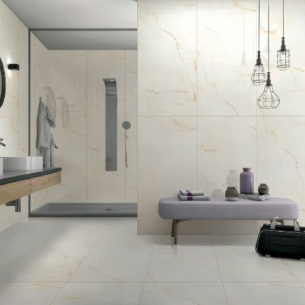 Resemblance of our tiles to natural stones is absolutely delightful. The marble type granular or vein like structure is not limited to surface, but goes to the depth of the total cross section of tile. It can be ground or cut or chamfered and yet the granular beauty will unveil its glory to the fullest.