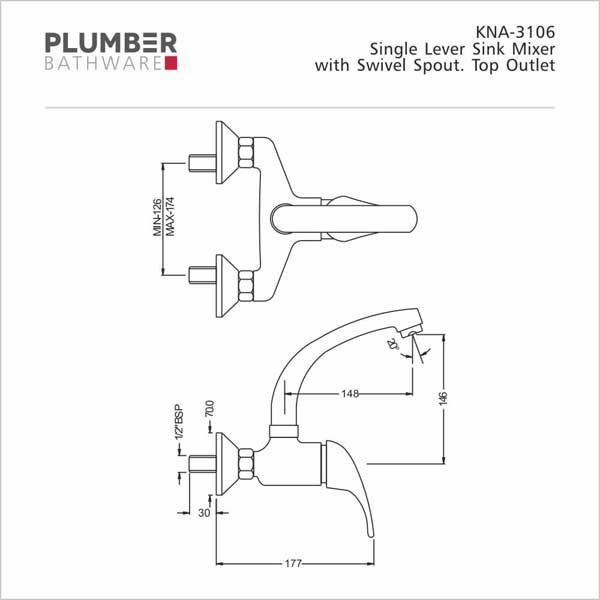 Upgrade your kitchen with the sleek and modern Plumber – Korina Series – Single Lever Sink Mixer – KNA 3106. This wall mounted sink mixer tap adds both style and functionality to your space.