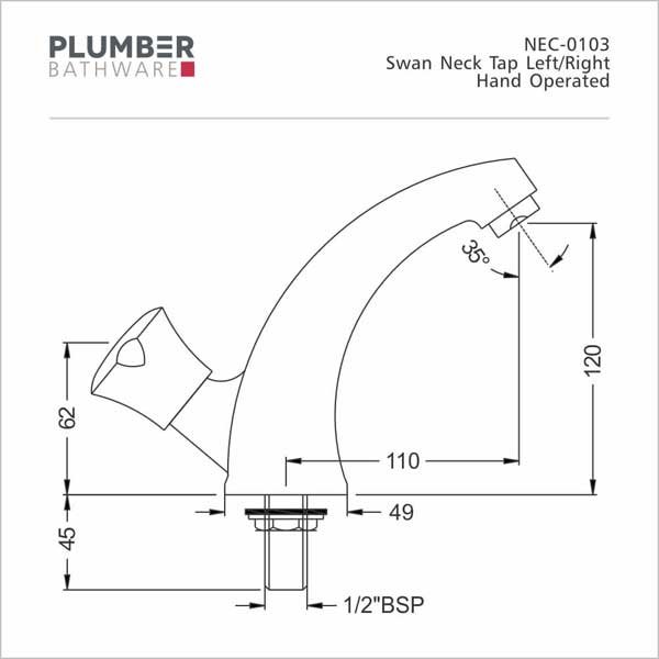 Upgrade your sink with the Plumber – Nectar Series – Swan Neck Left- NEC 0103L. A durable brass curved faucet that combines elegance and functionality. Perfect for modern bathrooms.