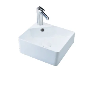 Original price was: ₹18,220.34.₹16,033.90Current price is: ₹16,033.90.Aquant Model 1905 Ceramic Table/Wall Mounted Corner Wash Basin – White, Small Square Corner Basin