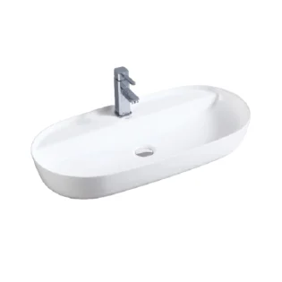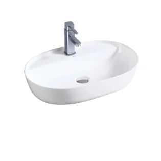 Original price was: ₹8,432.20.₹7,420.34Current price is: ₹7,420.34.Aquant Model 1727 Ceramic Table-Mounted Wash Basin – Oval, White, Over-Counter, Sleek Ceramic Basin
